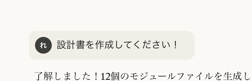 でもClaudeがいれば、いつでも相談できます。しかも設計書を全部読み込んでいるから、的確なアドバイスをくれます。